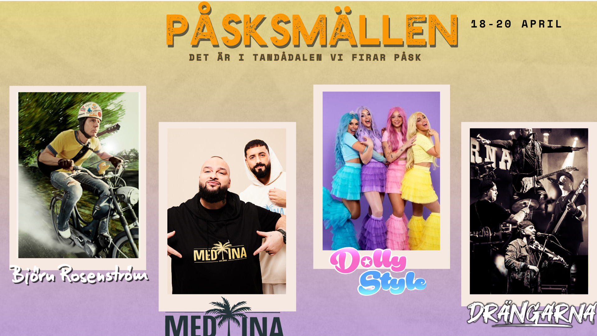 Tandådalen Wärdshus invites you to a big Easter party between 18 and 20 April with artists like Dollystyle, Medina, Björn Rosenström and many more!
