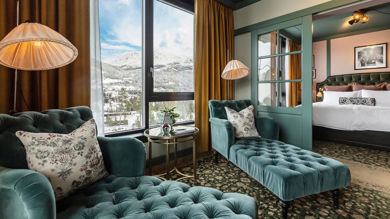 Hotellet har generös takhöjd och stora fönster. Den stilfulla inredningen låter hotellets belägenhet tala för sig själv – här är det naturen och upplevelserna som är i fokus.